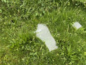 It’s nearly lawn mowing season in upstate New York. Last year, I noticed the person who mows our lawn skipped a big swath in our back yard. He left a message for my husband: he couldn’t mow the back of the lawn because it was covered in broken glass.